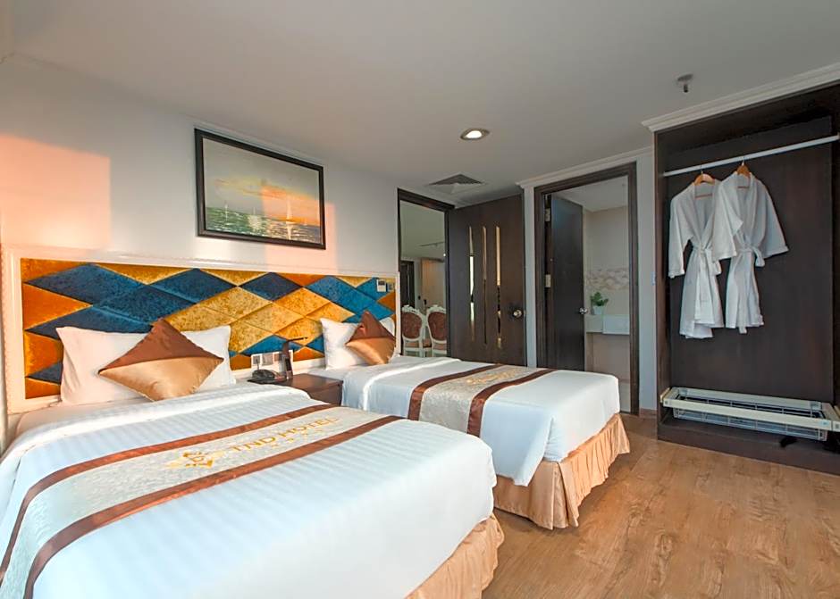 This double room has air conditioning, electric kettle and mini-bar. The 50-sqm luxurious symbolic Royal King Gold is perfectly tailored for those who love to experience an upper-class lifestyle. Sophisticatedly designed in neo-classical style, each of gold-plated details in bedroom, living room & bathroom makes guest feels like immersed in the dazzling Paris.